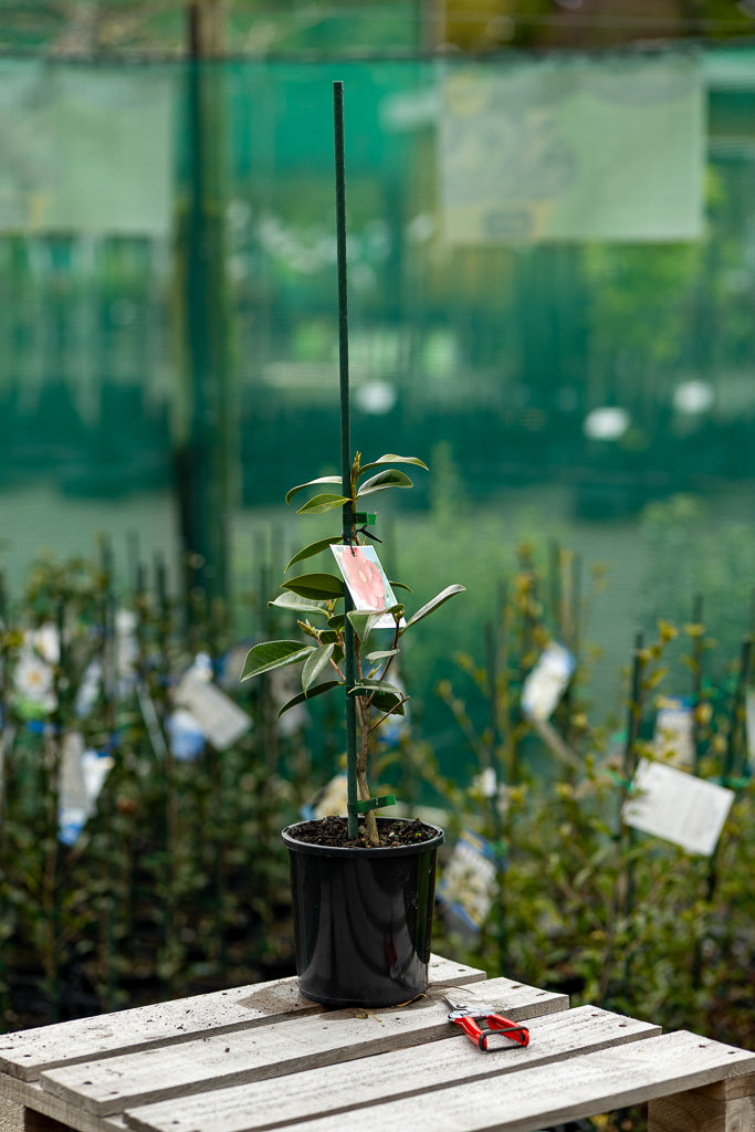 The Camellia Royal Velvet features rich, deep red blooms with a velvety texture. Its semi-double flowers, highlighted by yellow stamens, appear from August to September. This reliable camellia works brilliantly as a standalone plant or a striking hedge, adding a bold touch to any garden.